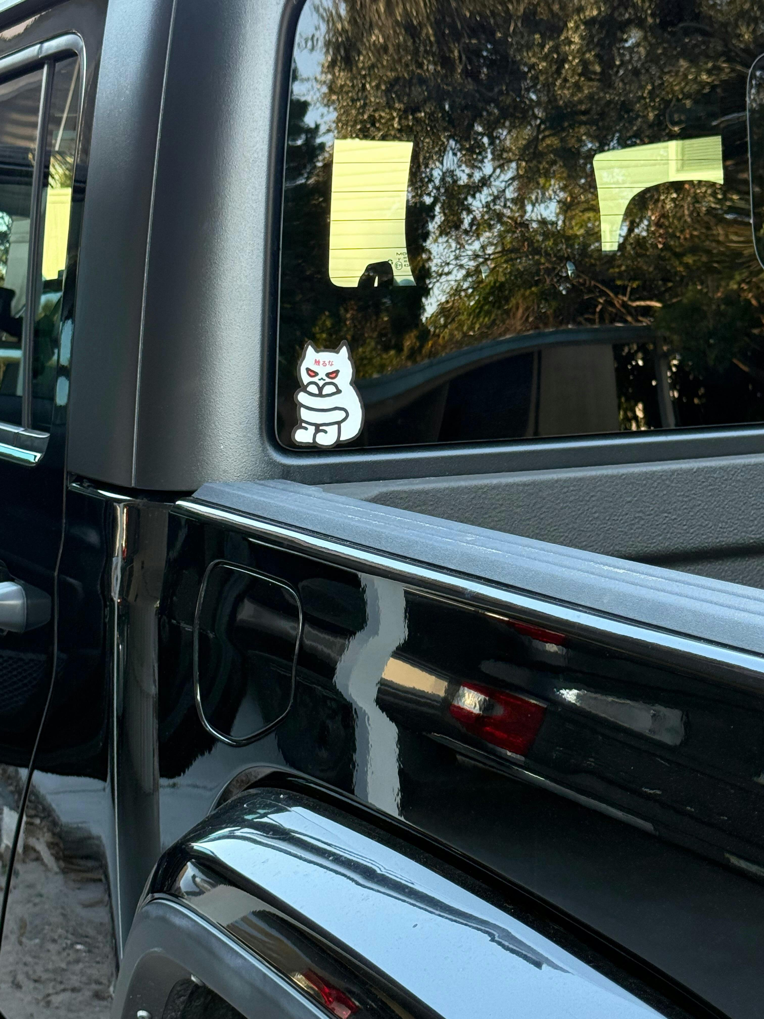 Awhile back I purchased the angry cat rat sticker for my last Jeep, had to get another one for my new Jeep so I decided on this little guy, I named him Buford.